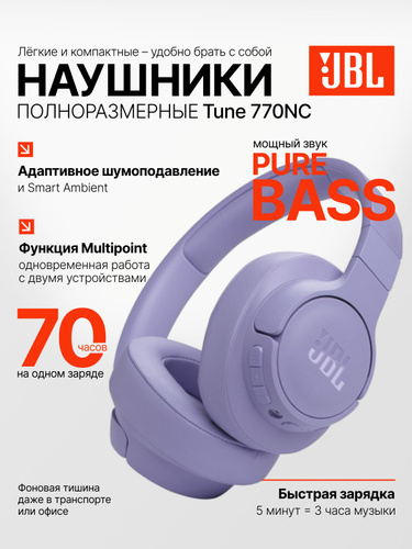 JBL Tune 770NC Наушники накладные беспроводные, фиолетовые