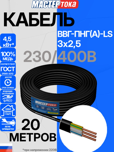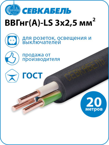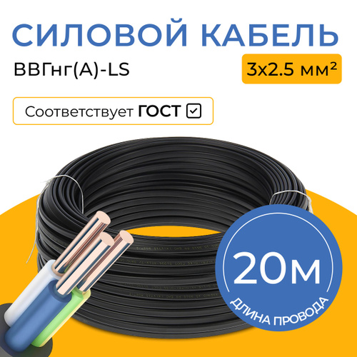 Силовой кабель ВВГнг(А)-LS 3 x 2.5 мм², 20 м