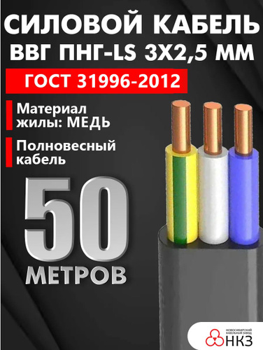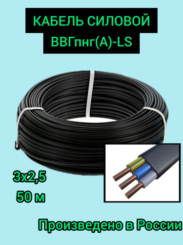 Кабель медный ВВГ-Пнг(А)-LS 3x2.5, ГОСТ, 50 метров