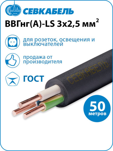 Кабель силовой Севкабель ВВГнг(А)-LS 3х2,5 ГОСТ, бухта 50м