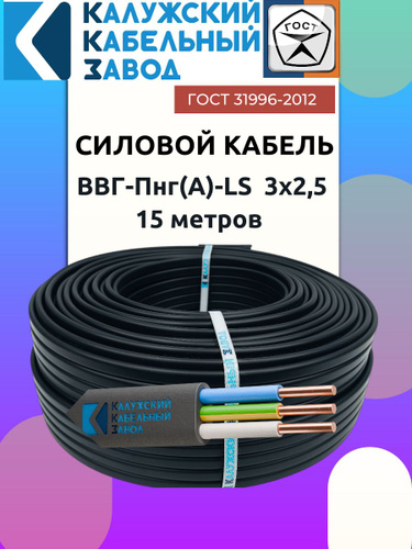 Кабель ВВГ-Пнг(А)-LS 3х2.5 ГОСТ 15 метров Калужский Кабельный Завод