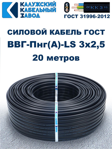 Кабель ВВГ-Пнг(А)-LS 3х2,5 ГОСТ, 20 метров, Калужский кабельный завод