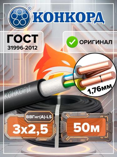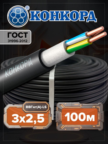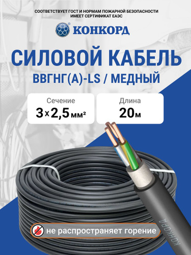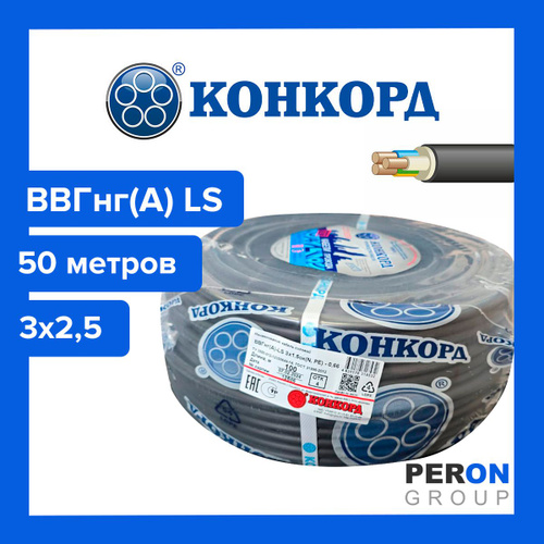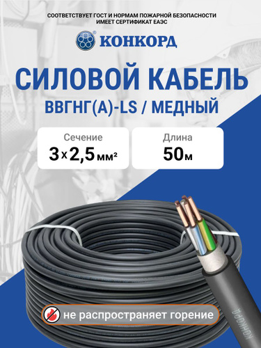Конкорд Силовой кабель ВВГнг(А)-LS 3 x 2.5 мм², 50 м, 9200 г