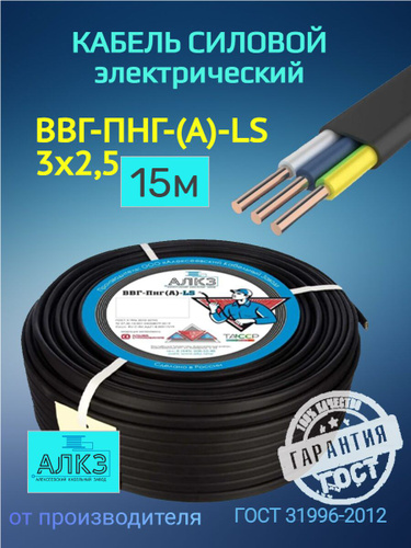 АлКЗ Силовой кабель ВВГ-Пнг(А)-LS 3 x 2.5 мм², 15 м, 1850 г