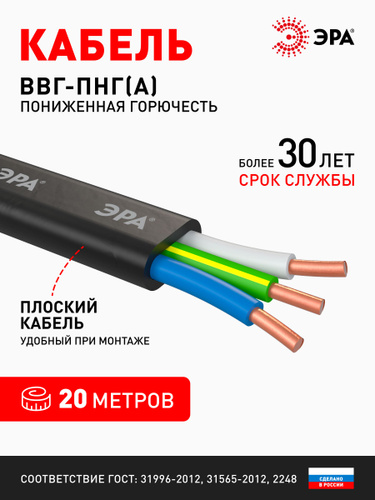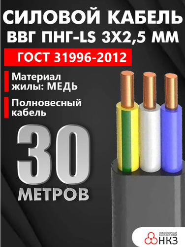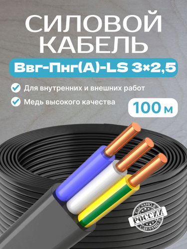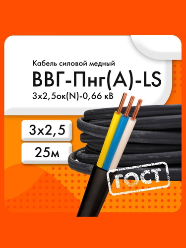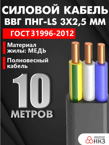 Кабель ВВГ/ВВГнг/ВВГ Пнг-LS 3х2,5 мм, честный гост, 10м