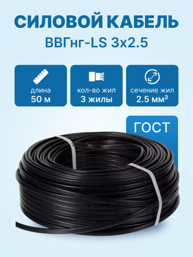 Кабель ВВГнг-LS 3х2.5 ГОСТ, бухта 50м