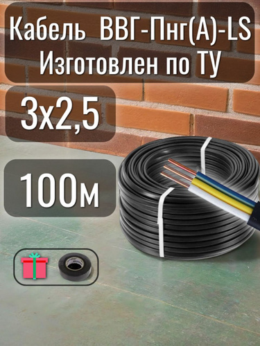 Кабель электрический ТУ ВВГ-Пнг(A)-LS 3х2.5 мм2 100м.