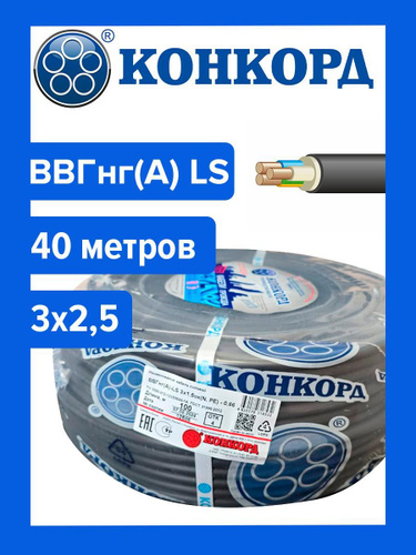 Кабель ВВГнг(А) LS 3х2,5 Конкорд 40м