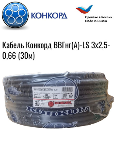 Кабель Конкорд ВВГнг(А)-LS 3х2,5-0,66 (30м)