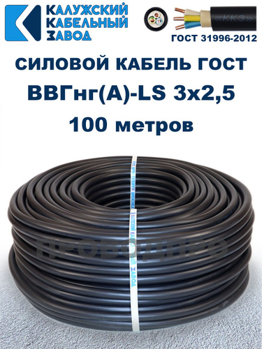 Кабель ВВГнг(А)-LS 3х2,5 ГОСТ, бухта 100 метров, Калужский кабельный завод