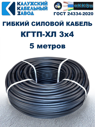 Кабель гибкий КГтп-ХЛ 3х4,0 - 5 метров. Калужский Кабельный Завод