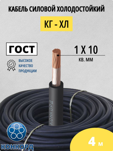 Кабель силовой сварочный КГ-ХЛ 1х10 380/660-2 (4м) ГОСТ кабель медный гибкий мягкий для сварочного аппарата Конкорд 116