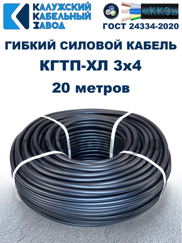 Кабель гибкий КГтп-ХЛ 3х4,0 - 20 метров. Калужский Кабельный Завод