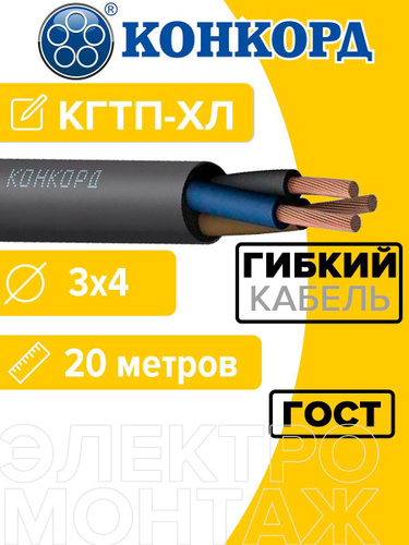 Кабель силовой гибкий КГ тп хл (КГТП-ХЛ) 3х4 Конкорд 20 метров