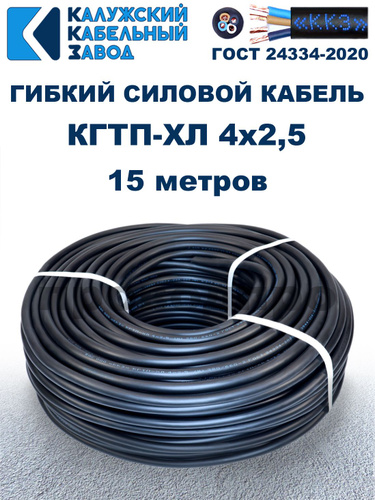 Кабель гибкий КГтп-ХЛ 4х2,5 - 15 метров. Калужский Кабельный Завод