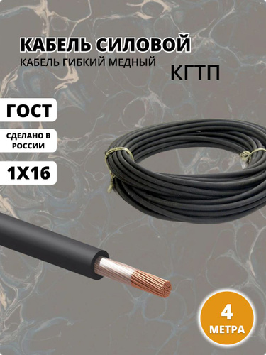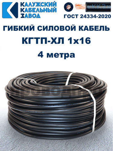 Силовой кабель КГТП-ХЛ 1 х 16 кв.мм 4 метра, сварочный гибкий мягкий, ГОСТ