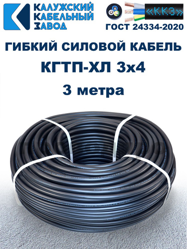 Кабель гибкий КГтп-ХЛ 3х4,0 - 3 метра. Калужский Кабельный Завод