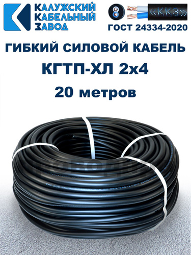 Кабель гибкий КГтп-ХЛ 2х4,0 - 20 метров. Калужский Кабельный Завод