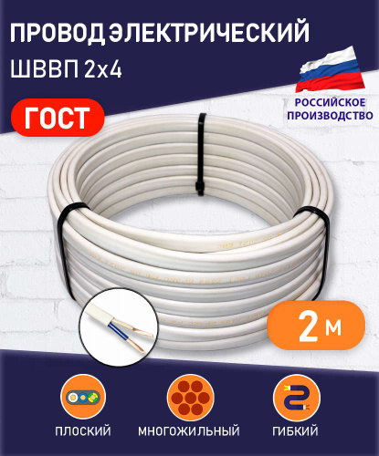 Шнур бытовой ШВВП 2х4 мм2, 2м