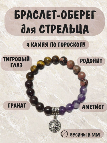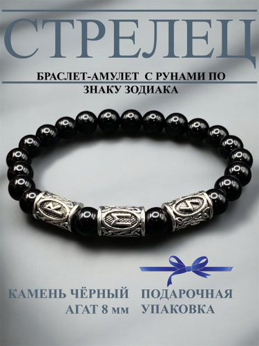 Стрелец Браслет Скандинавские руны по Знаку Зодиака из натурального камня