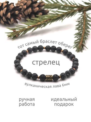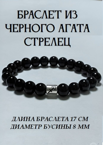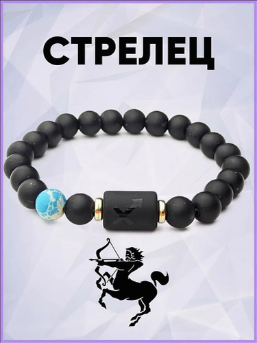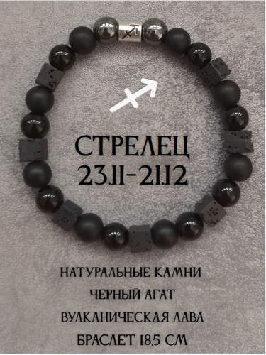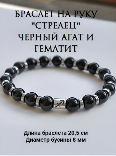 Браслет на руку гороскоп знак зодиака Стрелец с натуральными камнями черный агат и гематит