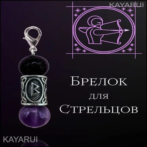 Оберег для Стрельца, Натуральный камень Цитрин и руна Райдо, Брелок для ключей, рюкзака, сумки, телефона