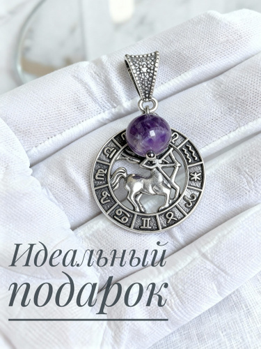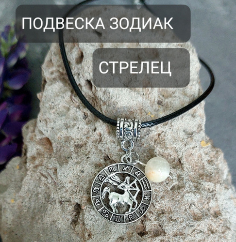 Подвеска на шнурке кулон на шею знак зодиака стрелец с натуральным камнем аметист