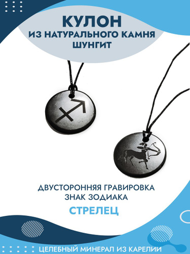 Кулон. Подвеска бижутерная на шею из натурального камня шунгит Знак зодиака Стрелец. Защитный оберег, Амулет.
