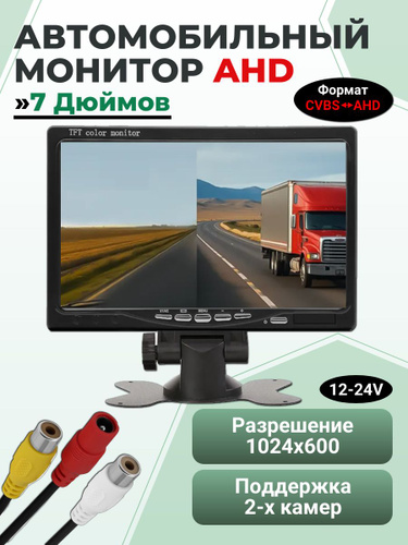 Монитор автомобильный AHD 7 дюймов для камеры заднего и переднего вида, универсальный (Поддержка форматов CVBS/AHD, 2 видеовхода AV/RCA), На регулируемой ножке