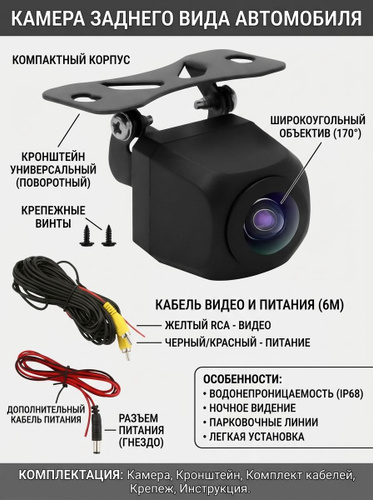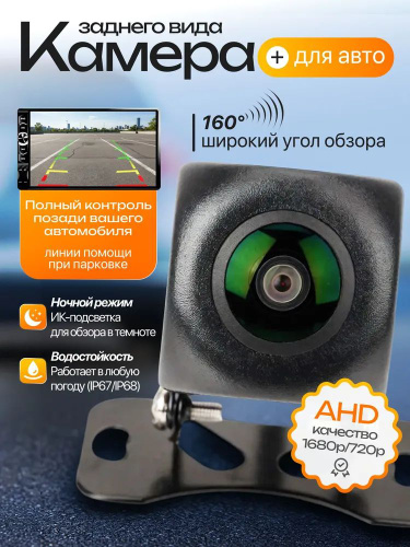 Камера заднего вида для авто AHD 1680p/720p, широкий угол 160, ночной режим, установка за 5 мин без сверления