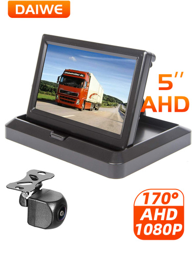 DAIWE AHD 5-дюймовый экран автомобиля можно переворачивать и складывать, В комплекте камера заднего вида AHD1080P с широкоугольным объективом типа рыбий глаз 170