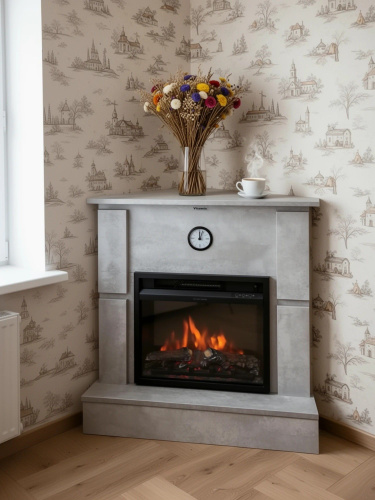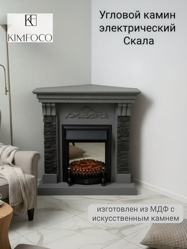 Угловой камин электрический KIMFOCO Скала серый с очагом