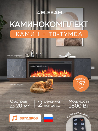 Камин электрический Тумба Elekam Modern TV с очагом Pulsar 38 венге + графит