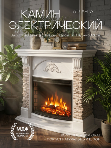 Камин электрический Атланта, звук потрескивания дров. Товар уцененный