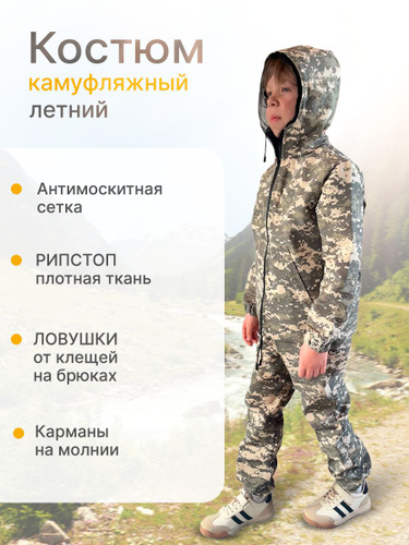 Костюм мужской камуфляжный, горка, летний, Пиксель, антимоскитный