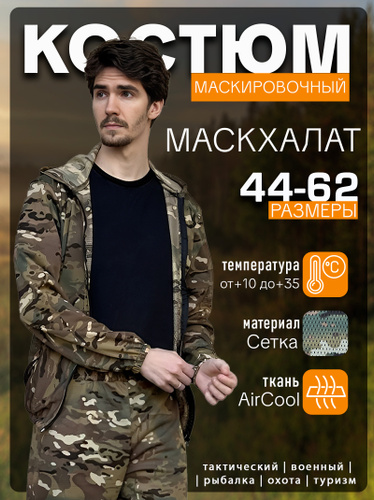 Маскхалат сетка для рыбалки и охоты 52-54 мультикам, тактический камуфляжный костюм
