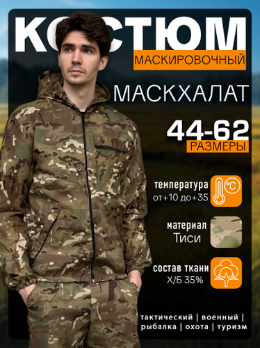 Маскхалат ТИСИ камуфляжный костюм для рыбалки и охоты летний, тактический камуфляжный костюм