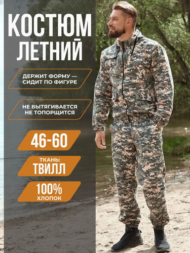 Костюм мужской камуфляжный, летний, ТвиллПиксель, горка