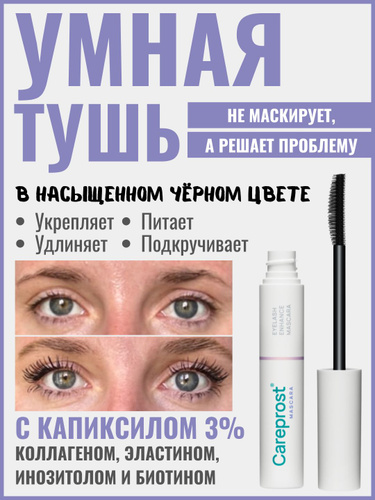 Укрепляющая тушь для восстановления и роста ресниц Careprost MASCARA, 9 мл, чёрная