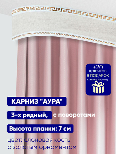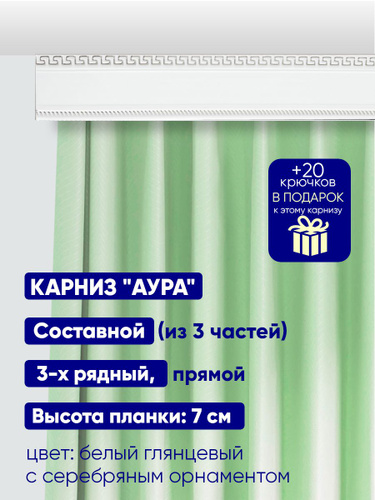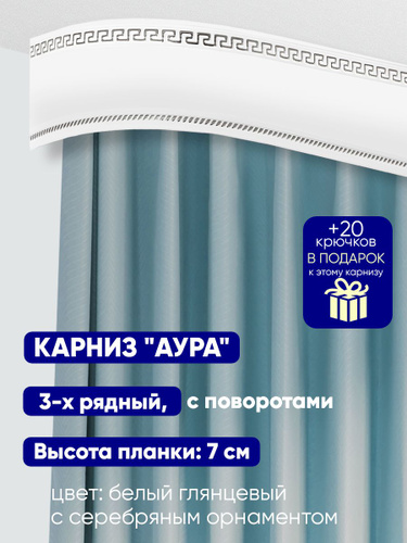 Карниз "Аура" длина 350 см, составной, трехрядный, потолочный (без кронштейнов), пластиковый, прямой, с багетной планкой. Высота планки: 7 см.