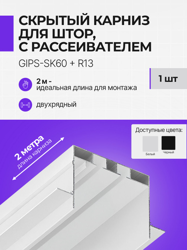 Карниз потолочный двухрядный скрытого монтажа с рассеивателем для подсветки 2 метра, 1 шт., цвет белый