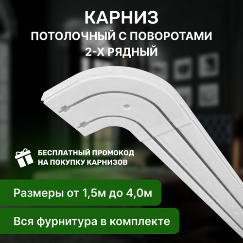 Карниз потолочный двухрядный с поворотом в наборе "Галант" 1,6 белый глянец