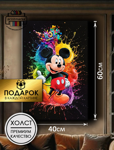 ПринтМарка Картина на холсте "микки маус" 40x60 см