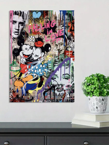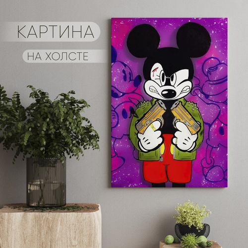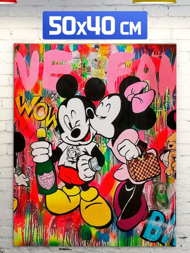 Постер "Картина с Микки Маусом, холст, граффити, для спальни девочки-подростка", 50 см х 70 см
