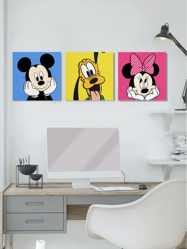 Картина модульная на холсте с принтом Микки Маус (Mickey Mouse, Minnie Mouse, Минни Маус, Дональд Дак) для интерьера комнаты на стену/ 30х30 см, 3 шт