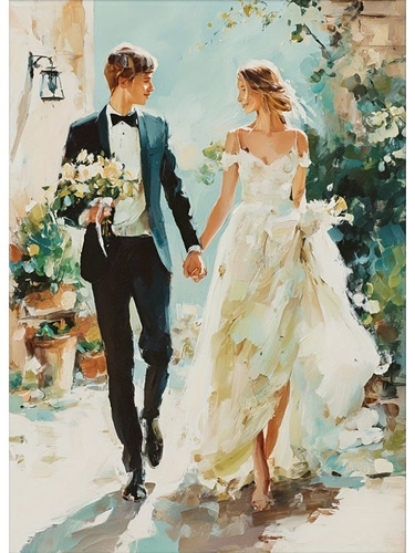 Картина "Портрет молодоженов на полотне, 40 х 50CM" 40x50 см
