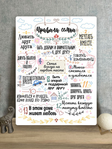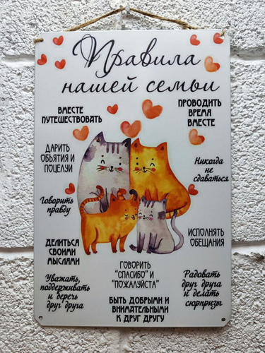 "Правила дома и семьи" постер металлический интерьерный на стену табличка 20 см х 30 см подарок молодоженам на свадьбу