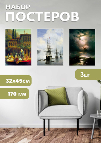 Набор постеров картины Айвазовского, 3 шт, 32х45, белая бумага