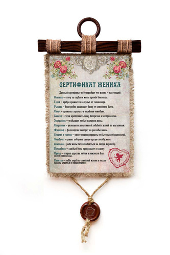 Универсальный свиток / Сертификат женика, А4 / Открытка на свадьбу