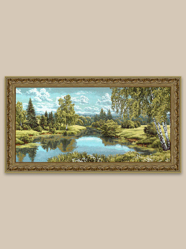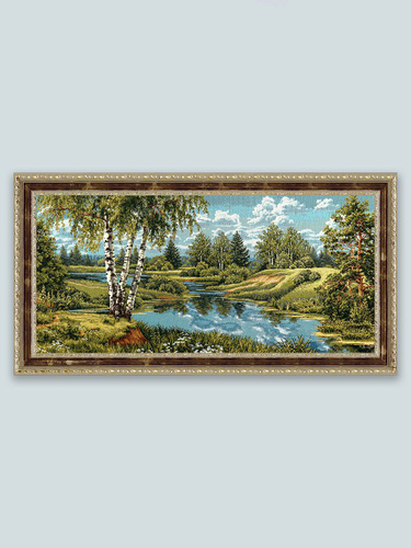 Гобелен "Гобелен картина на стену для интерьера 56х109 Пейзаж без уток в багетной раме", 109х56 см